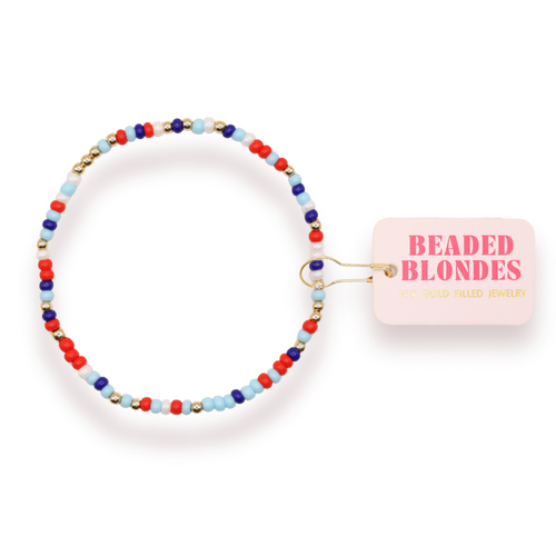 Beaded Blondes Red, White, and Blue Luster Sprinkle Bracelet