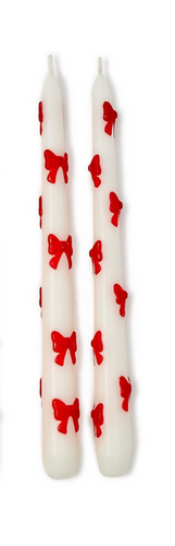 White & Red Bow Taper Candles