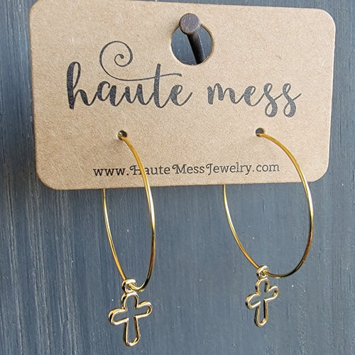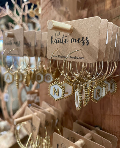 Haute Mess Hexagon Charm with Initial on Gold Hoops