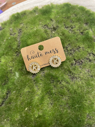 Haute Mess CZ Starburst Letter on Gold Hoops