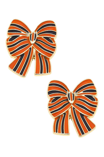 Halloween Striped Bow Stud Earrings in Orange & Black