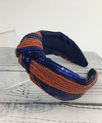 Orange and Navy Sequin Knot Headband