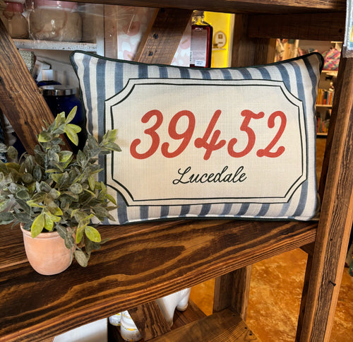 French Stripe Ribbon Zip Code Pillow 39452 Lucedale