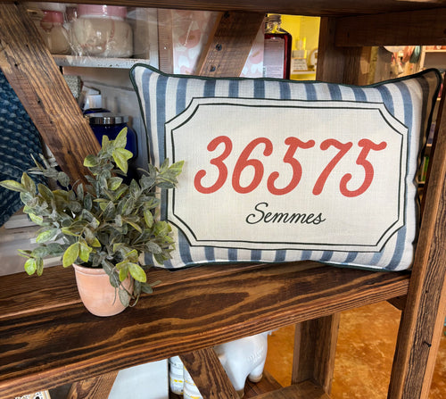 French Stripe Ribbon Zip Code Pillow 36575 Semmes