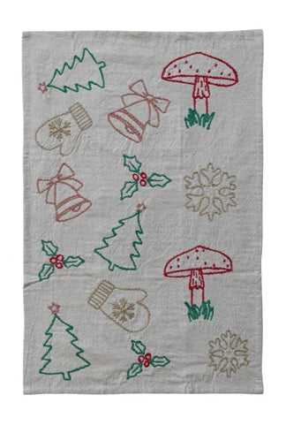 This beautifully woven cotton and linen tea towel collection adds festive elegance to your kitchen during the holiday season. Each towel features delicately embroidered holiday icons in a rich, multicolor palette — bringing warmth and charm to your everyday routine.