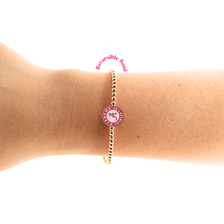 Get ready to support your favorite team in style with the Alabama Bead Bracelet! Perfect for game day, this bracelet features unique Alabama-themed beads that will be sure to catch everyone's eye. Show off your team spirit and accessorize like a true fan!
