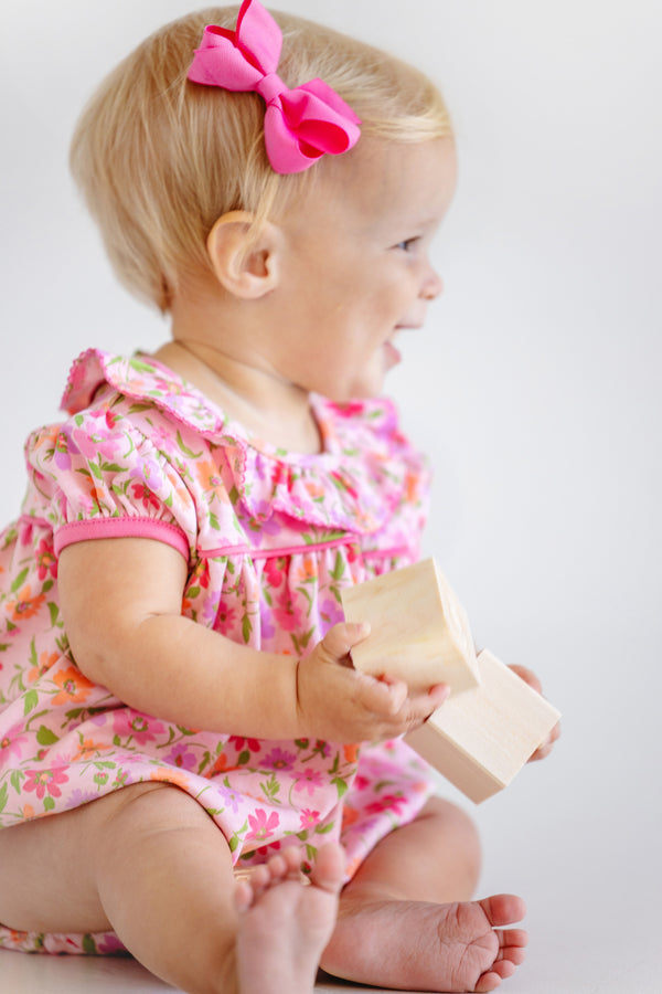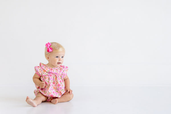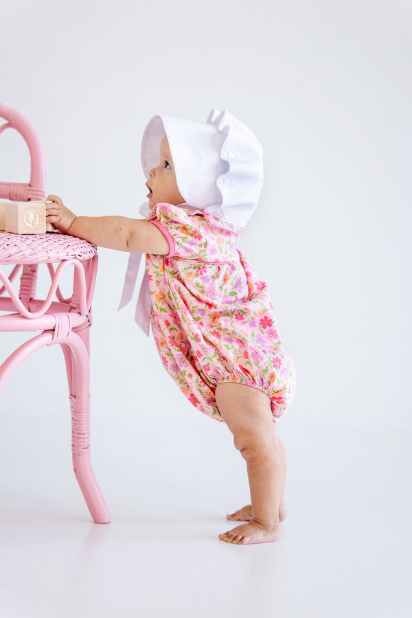Our Ramona Ruffle Collar Bubble is perfect for play! Featuring Grand Cayman Gardens with Romany Rose, your little one will look oh so precious in this piece!
