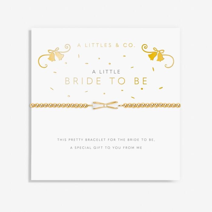 Our A Little 'Bride To Be' Bracelet is sure to complete your wedding day look, boasting a stretch-bead style that ensures a comfortable fit on any wrist. The bracelet is adorned with a gold-tone plated bow charm, which is wrapped around one of our stylized cards and framed by a heartfelt poem, the perfect treat for your loved ones.