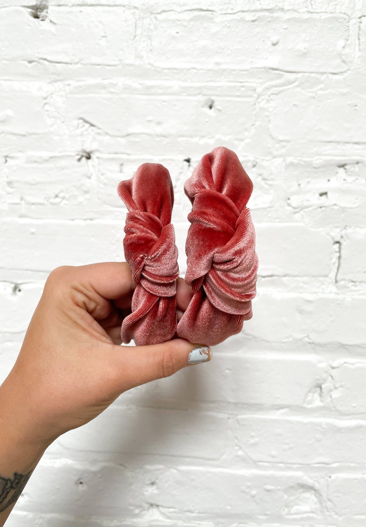 Girls Top Knot Headbands Each one is made with a metal headband base for strength and structure , they have a little bend too so you can loosen or close it. They are all handmade to order. Dimensions: Width: 1" inches at sides Height: 1/2" inch Length: 14 " inches They are smaller and thinner than the adult size. They are made on the same base as the original adult top knot. ** Each one is handmade and is subject to slight variations. Message me for any customization inquiries or questions! I'm here to help and try to reply as quickly as possible!