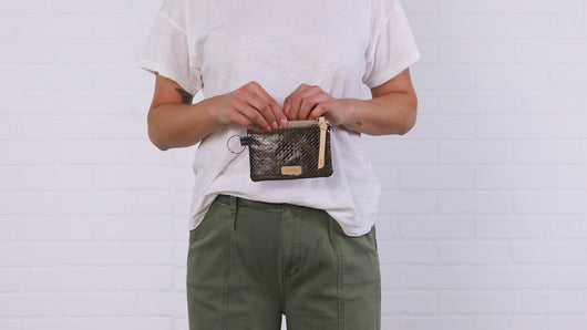 The Pouch is an easy, all-in-one bag to keep your cards and cash organized and on hand. An attached metal keyring takes the Pouch from your bag to keys with ease.