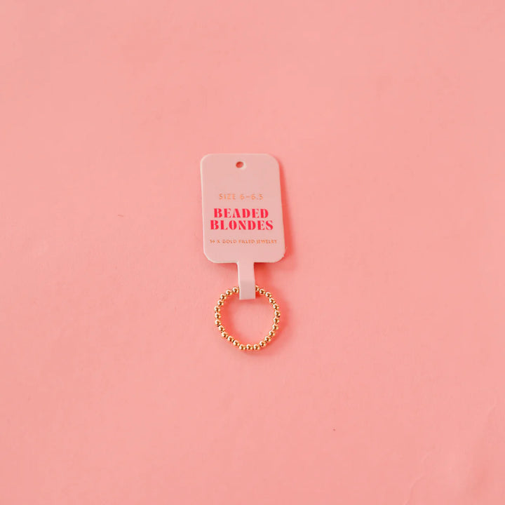 Our dainty gold filled Beaded Bands™ are an elastic ring perfect to wear alone or to be stacked with your class ring or other statement rings. We suggest getting the same size as your ring.