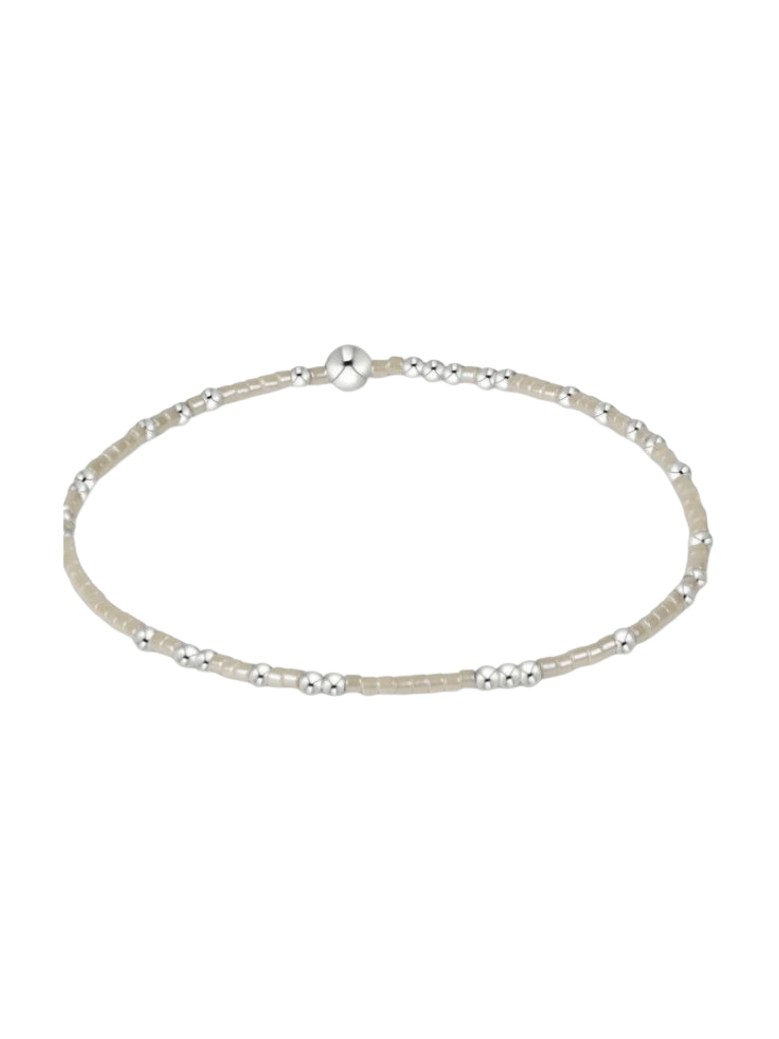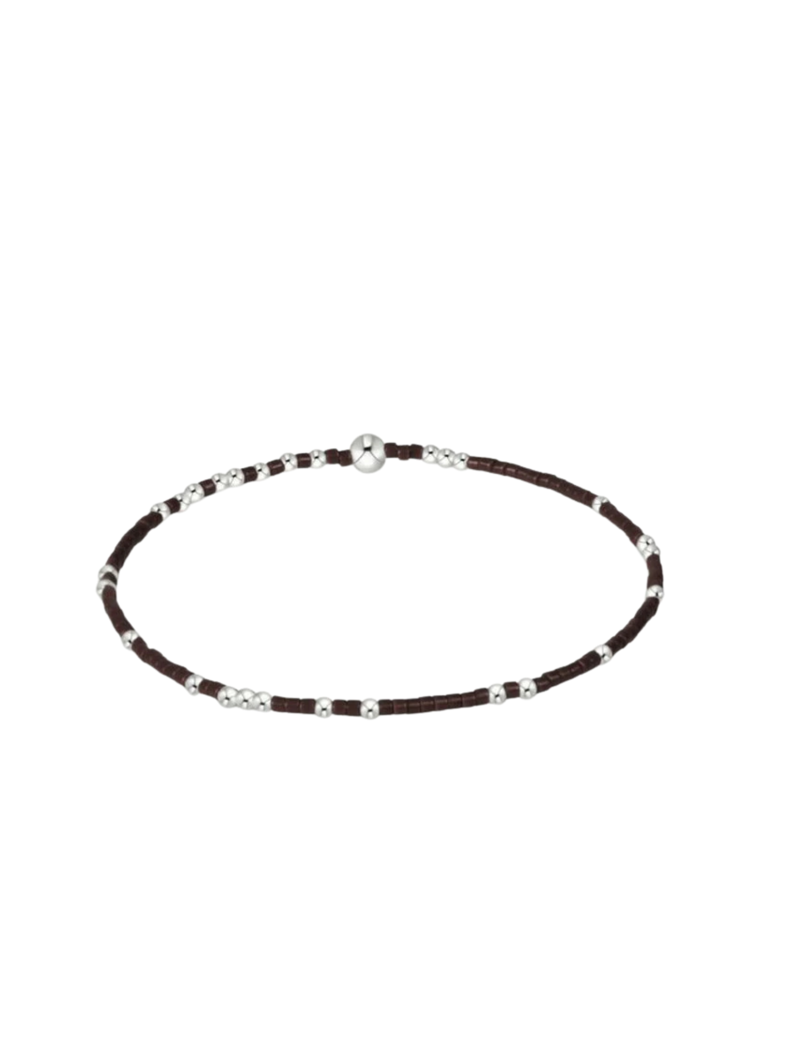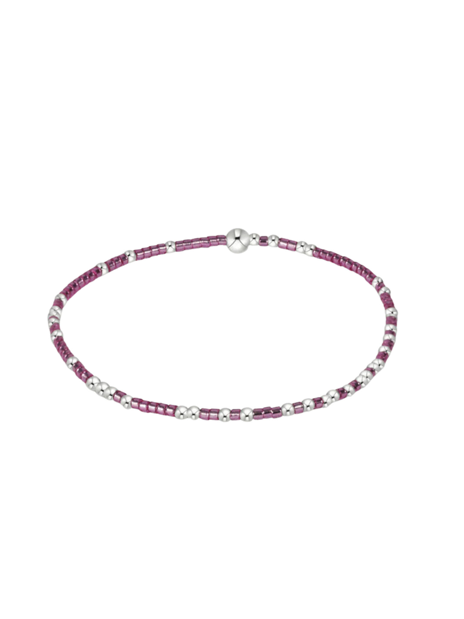 Hand beaded on high performance elastic for a slight stretch to easily roll on and off your wrist