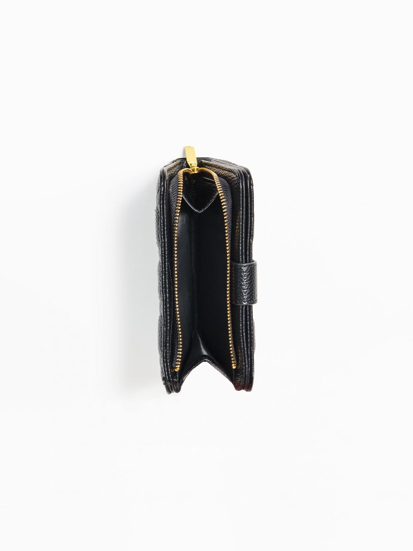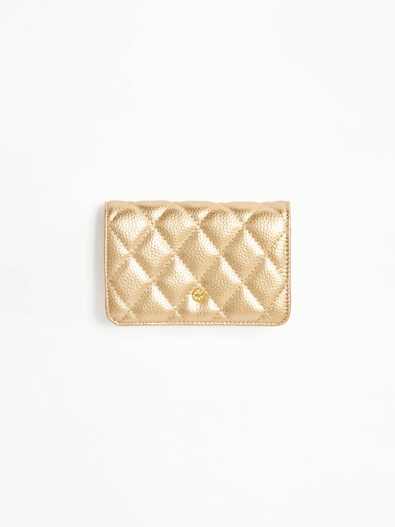 Designed to keep up with your busy lifestyle, the Essential Wallet is your go-to accessory for everyday organization. Its compact design allows it to easily slip into your bag or pocket, ensuring your essentials are always within reach. With thoughtfully placed compartments, including an ID window, slip pockets, a bill slot, and multiple credit card slots, it offers both functionality and style. The secure snap closure and elegant gold hardware add a touch of sophistication, making it the perfect companion for any occasion.