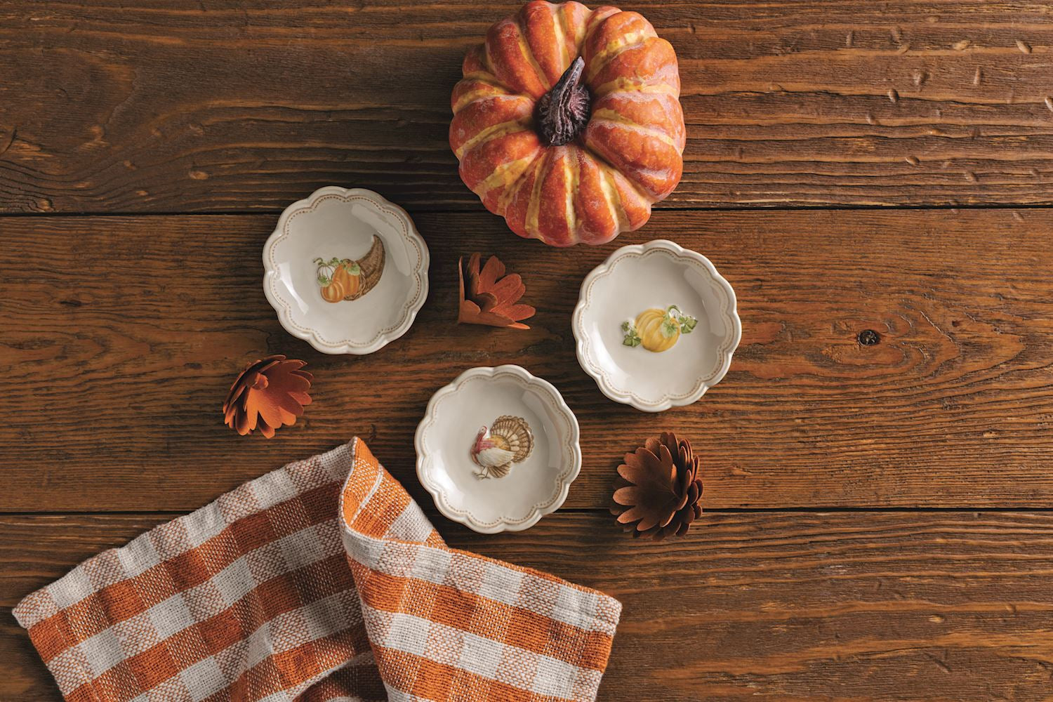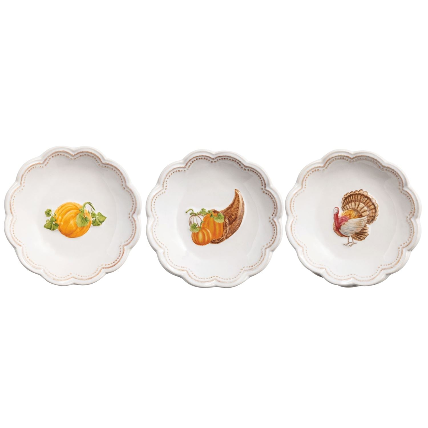 Stoneware bowls with scallop rims adorned with detailed images.Measures 4" in diameter, providing ample space for serving your favorite treats.