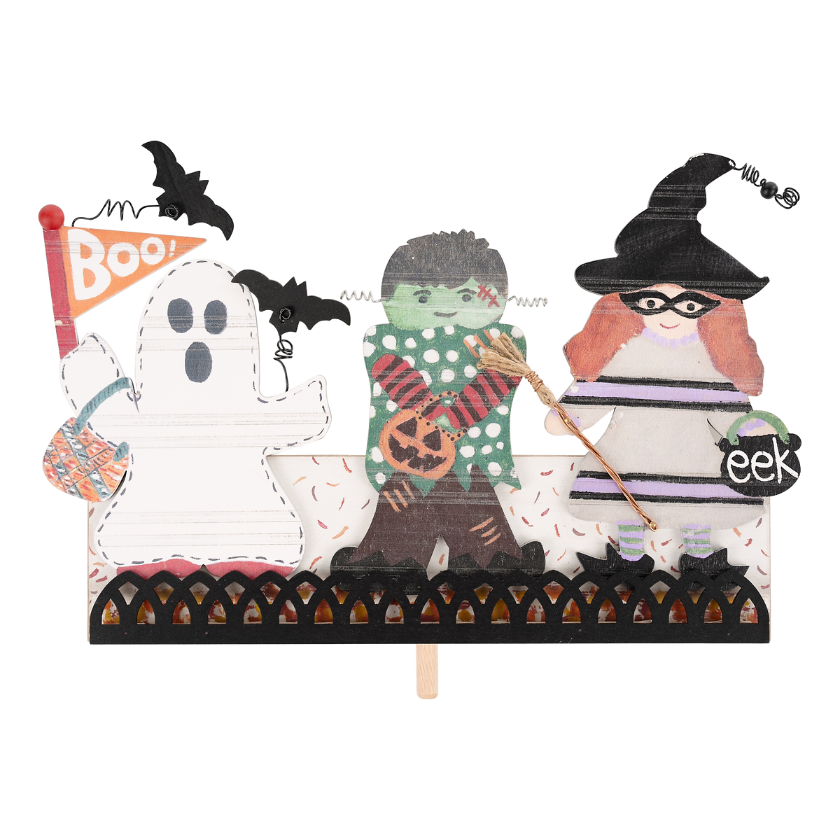 Add a playful pop of Halloween fun with a Halloween Topper! Featuring a cheerful jack-o’-lantern overflowing with colorful candy, brightly patterned candy corn, or adorable trick or treaters these festive toppers are the perfect pairing for our welcome boards and wooden bases. Ideal for trick-or-treat season, Halloween parties, or spooky porch décor, it brings a whimsical and sweet touch to your fall displays. Easy to switch out for seasonal decorating, this topper is a must-have for celebrating Halloween with charm and cheer!