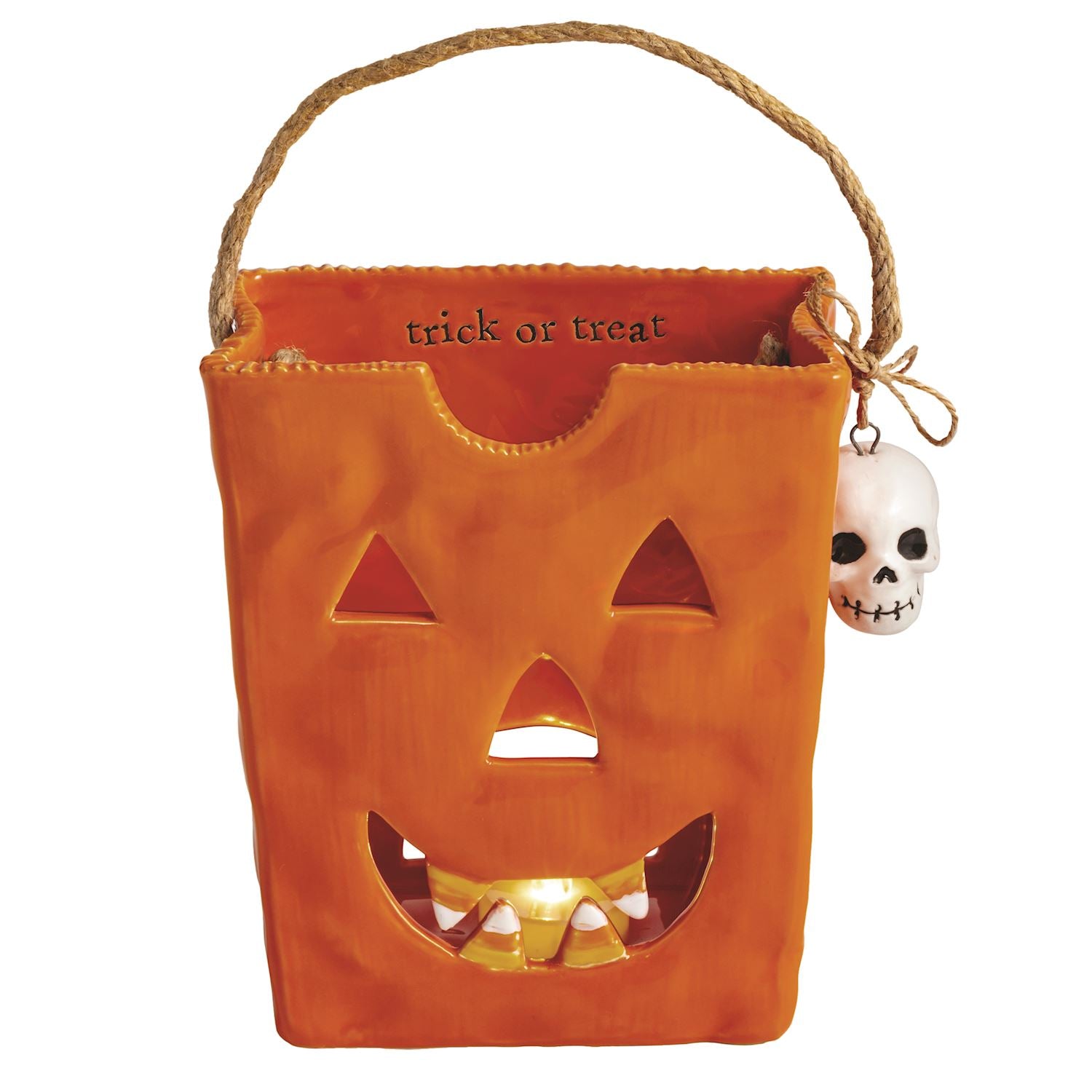 Add a charming glow to your Halloween décor with the Mud Pie Ceramic Treat Bag Lantern, available in three whimsical sizes. Crafted from mottled ceramic for a rustic, hand-crafted look, each lantern is shaped like a festive trick-or-treat bag and finished with a natural jute handle for easy carrying or hanging.