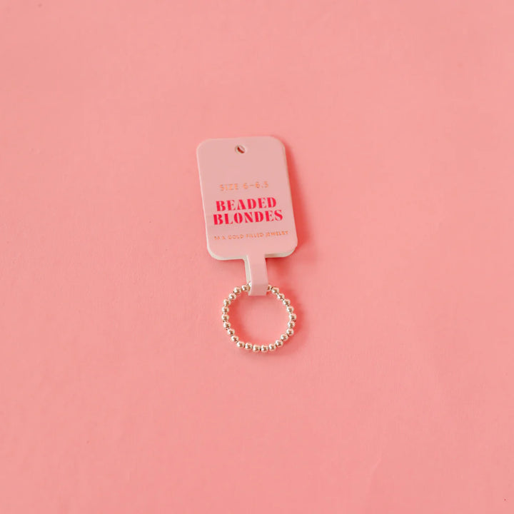 Our dainty silver Beaded Bands™ are an elastic ring perfect to wear alone or to be stacked with your class ring or other statement rings.