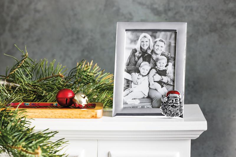 Celebrate the holiday season with this charming Metal Santa 4X6 Frame, perfect for showcasing your favorite festive memories. Crafted from durable cast aluminum, this frame features a delightful metal and enamel Santa layered icon, adding a touch of whimsy and cheer to your decor. Designed to hold a 4" x 6" photo, it offers an elegant way to display your cherished moments. The frame measures 8" x 6" overall and includes a convenient easel back, making it easy to place on any tabletop or mantel. Ideal for holiday gifting or as a seasonal accent in your home, this frame combines quality craftsmanship with a playful holiday spirit.
