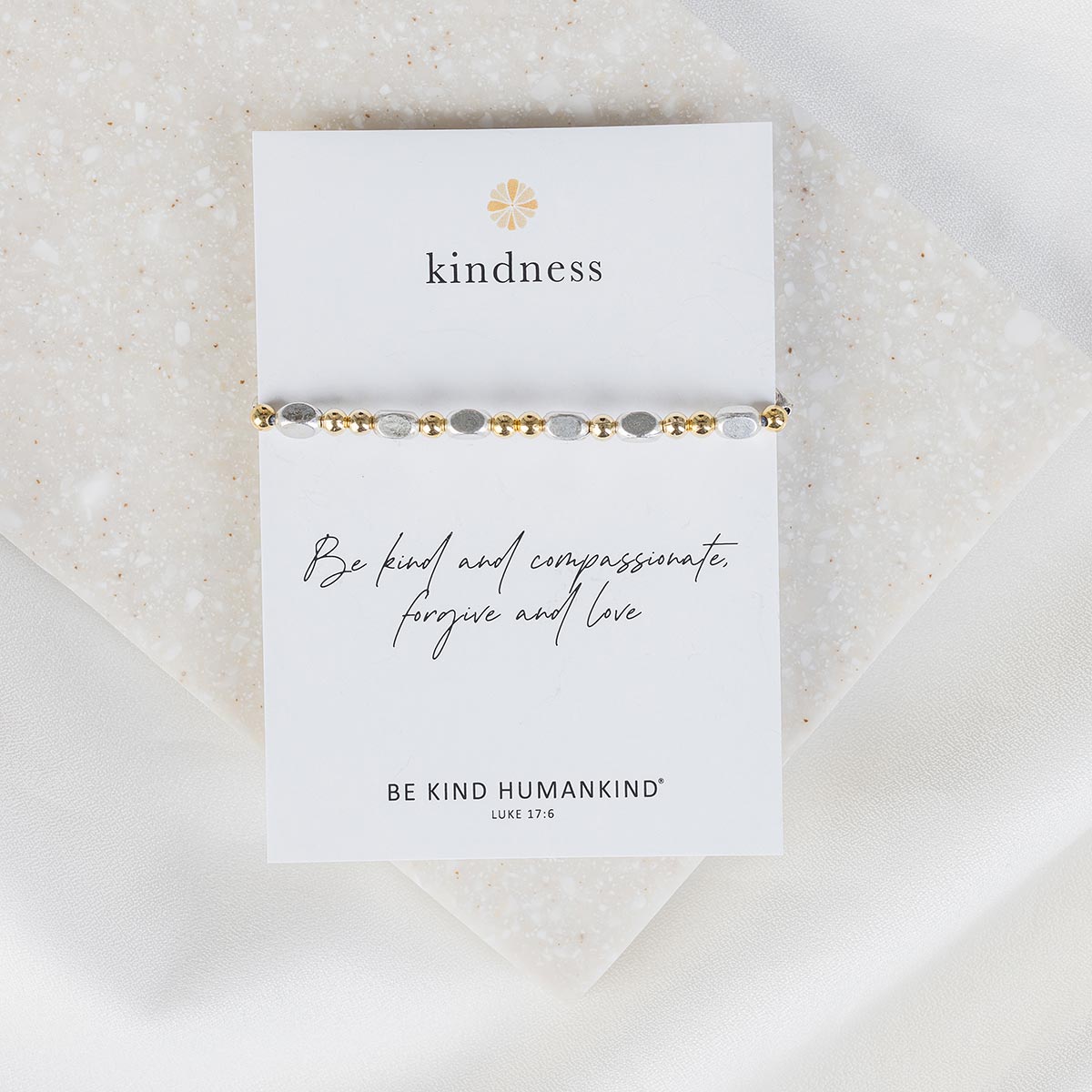 - Silver and/or gold-tone metal beads with the word "kind" in Morse code