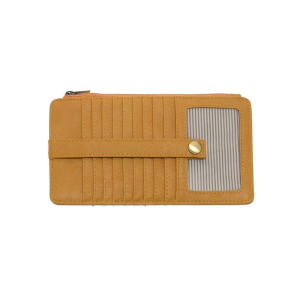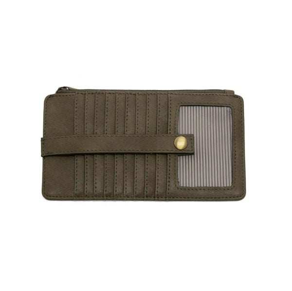 This slim and sleek card wallet has 9 credit card pockets, an ID window, zippered change pocket and zippered billfold pocket all in casual distressed Vegan Leather available in a kaleidoscope of beautiful colors.