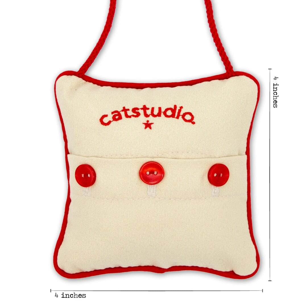 Our original design is uniquely woven (not printed!), then sewn into an adorable, 4-inch miniature pillow ornament. Complete with a cord for hanging from your Christmas tree, doorknob—you name it!