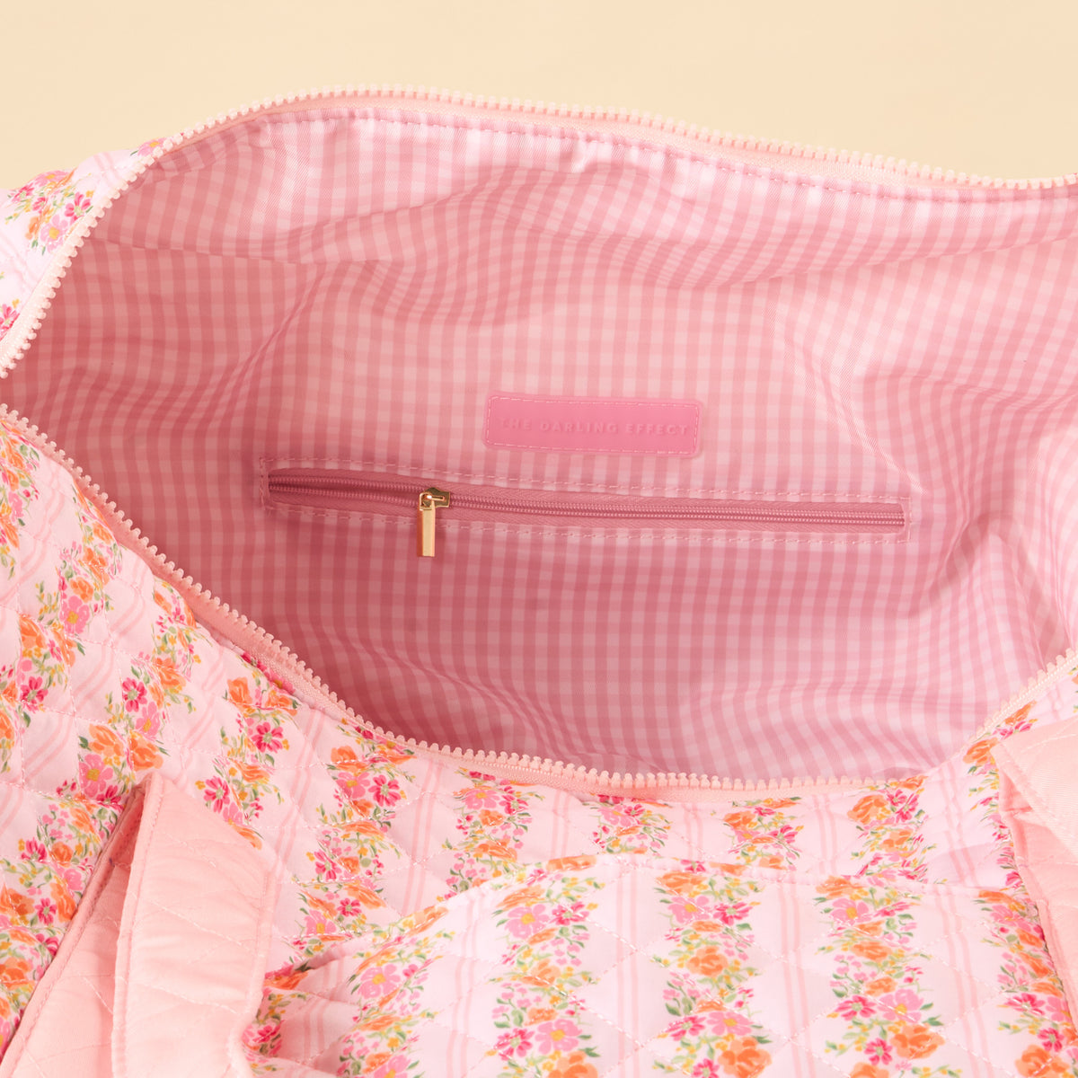 Ready for your next adventure? Our On-the-Go Quilted Weekender Bag is the perfect blend of spaciousness and style, designed for all your travel needs! Crafted from soft, quilted fabric, this bag features roomy interior and exterior pockets to keep your essentials organized. The signature darling wipeable lining makes it easy to clean, while the adjustable shoulder strap and pass-through trolley sleeve ensure travel convenience.