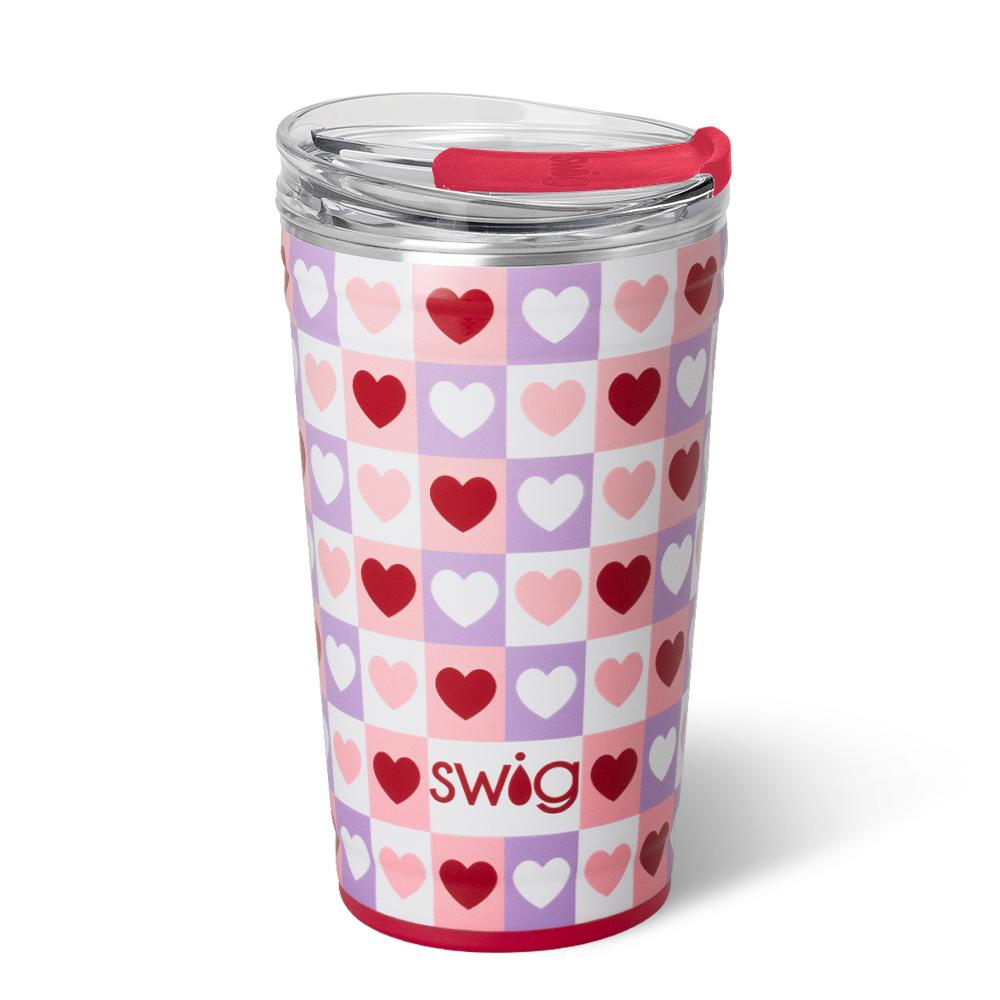 Party-Ready! 🥳🥤Check off your Valentine's Day wish list with this classic checkered design filled with hearts on a glitter white background. 💟