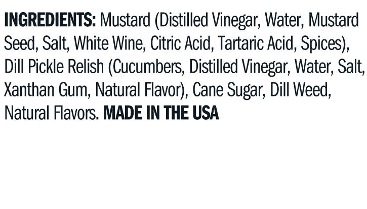 Mouthwatering dill pickles and smooth Dijon... it's the mustard you've been waiting for! Level up your burgers, brats, and dogs. Add some zing to potato salad and deviled eggs.