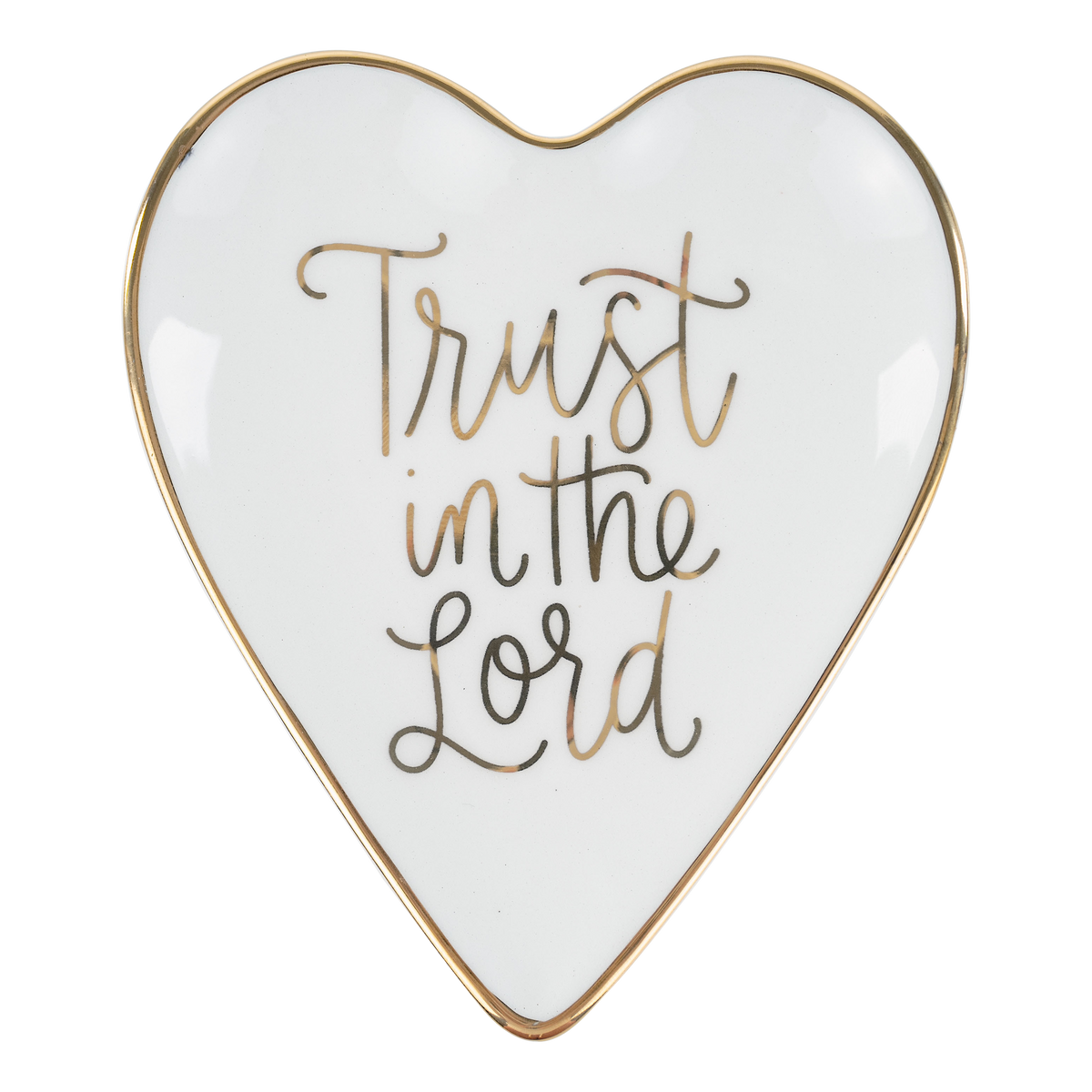 Add a touch of faith and elegance to your home with the Trust In The Lord Gold Trinket Tray. Crafted from high-quality materials and featuring a beautiful gold accent, this tray offers both style and inspiration. Ideal for holding jewelry, keys, or small keepsakes, its uplifting message serves as a daily reminder to trust in faith. Perfect for any room in your home, it makes a thoughtful gift for loved ones or a personal keepsake to help you stay centered. Elevate your decor with this elegant and meaningful piece today!